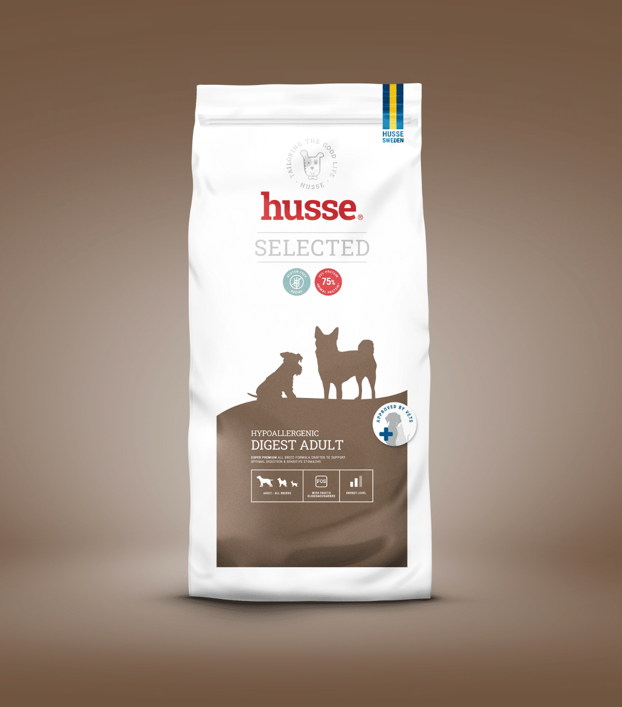 Hypoallergenic Digest Adult est un aliment complet destiné aux chiens adultes présentant une sensibilité digestive. Sa recette exclut le gluten, un composant pouvant être mal toléré chez certains chiens et associé à des déséquilibres digestifs ou cutanés.